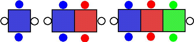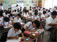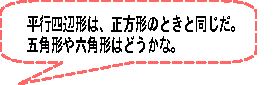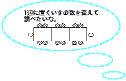 ○ テーブルの形を平行四辺形、五角形、六角形の中から選び、テーブルといすの数の関係を調べる。 |